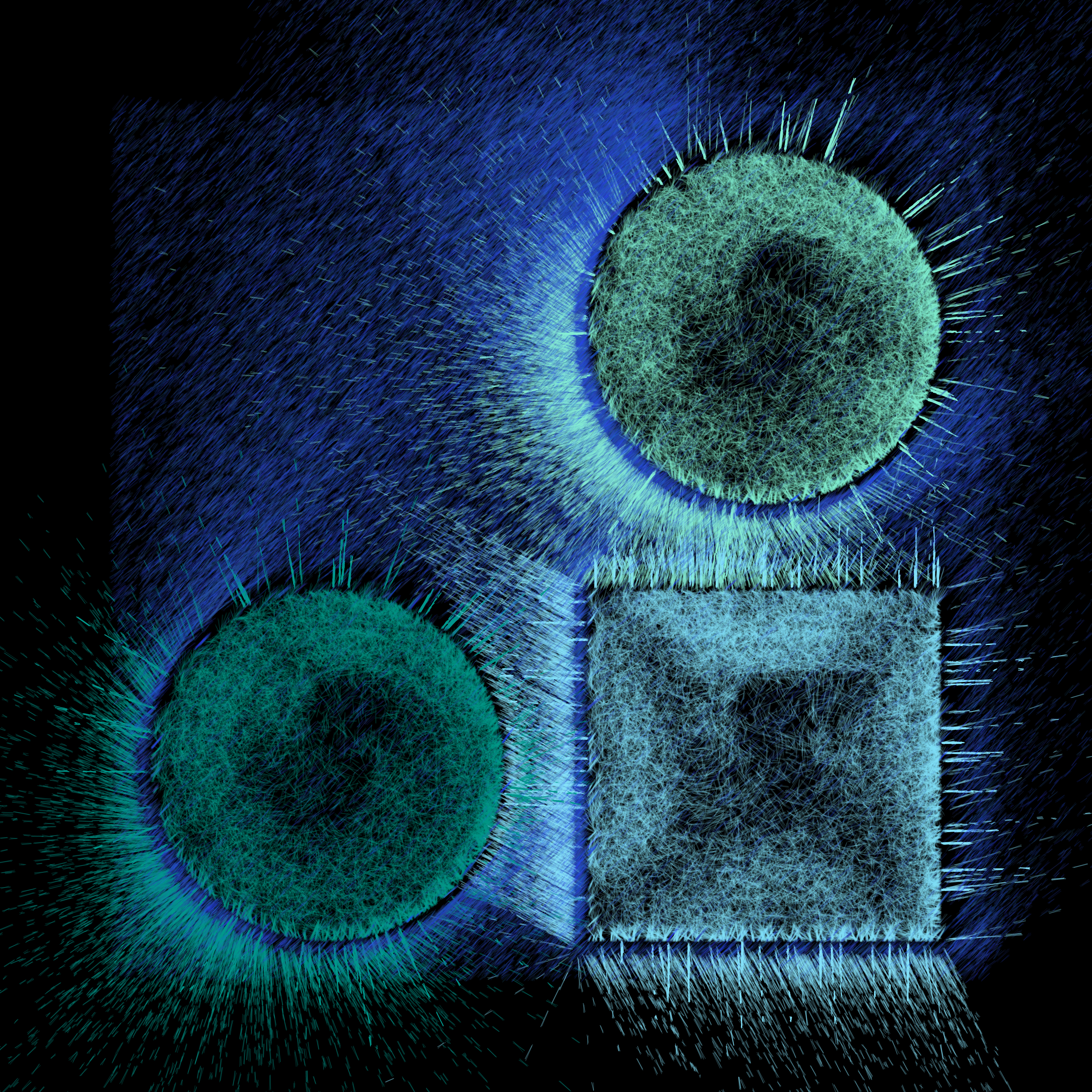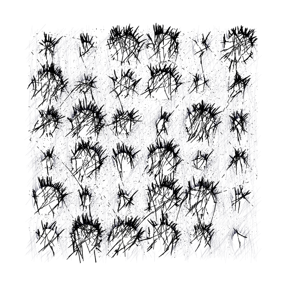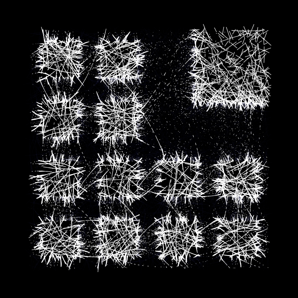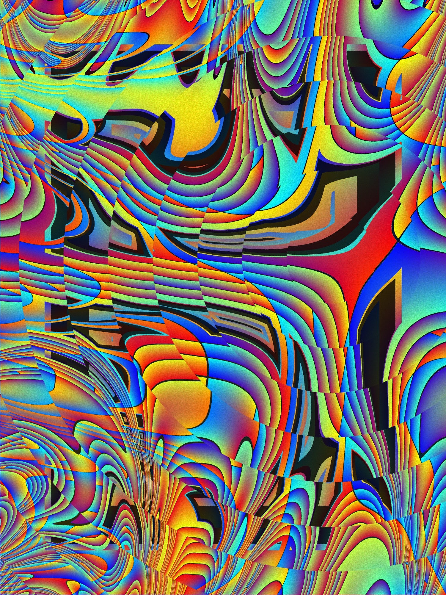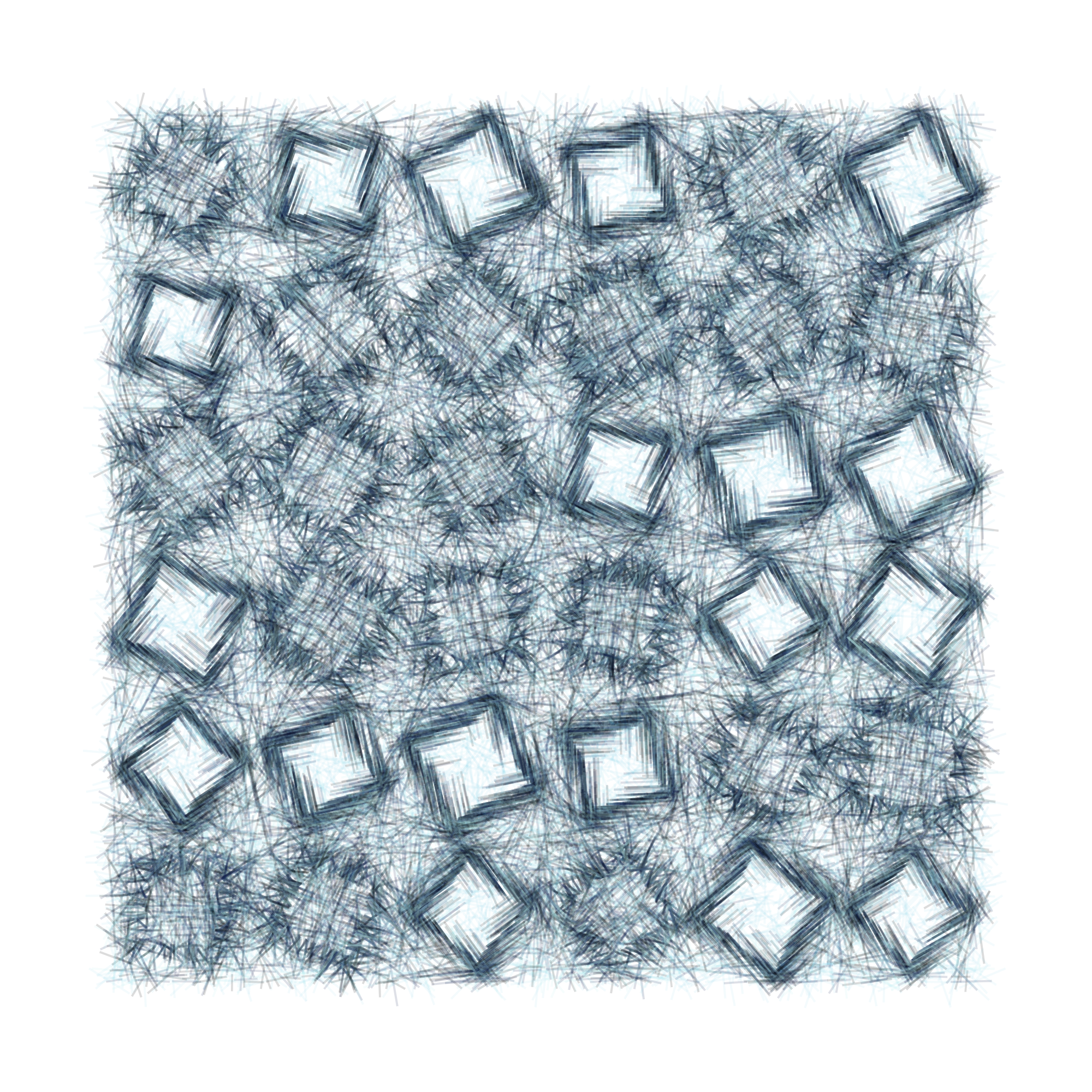 Generatieve kunst is kunst die gemaakt wordt met behulp van computercode en wiskundige algoritmes. Zo kan je een programma maken dat kunstwerken maakt die allemaal verschillend zijn maar wel duidelijk tot dezelfde familie behoren. De afbeelding hieronder is een voorbeeld. Klik er maar eens op.