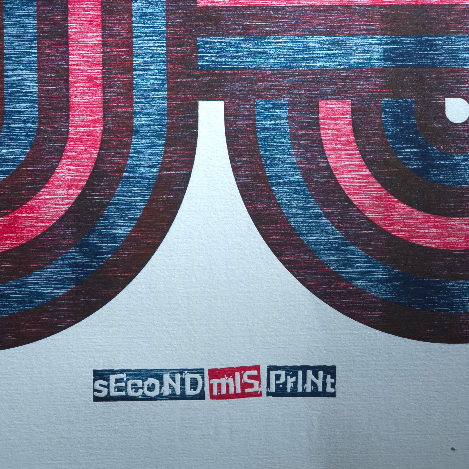 Because of the manual printing process, each impression differs subtly. Misalignment, pressure variations, and small ink smears are not corrected but embraced as integral to the work.