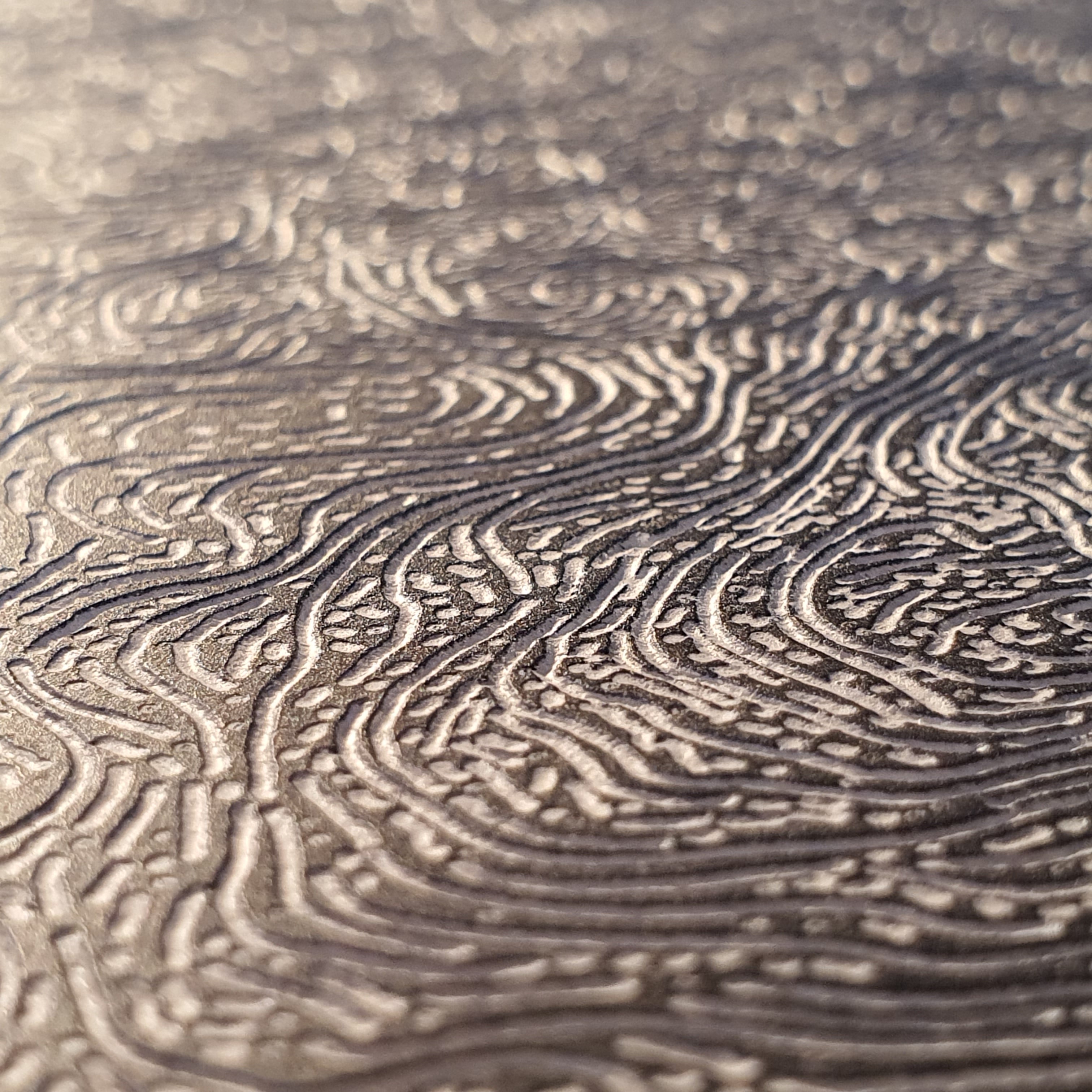 The drawing is then engraved into black wood using my self-built laser cutter. But black on black is subtle—almost invisible. To bring the portrait to life, I hand-apply oil paint made from linseed oil and pigment powders into the engraved lines. The result is a richly textured relief that feels somewhere between a stone engraving and a digital fossil.